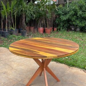 Mesa Redondo Madeira Enverzizada Com Base Em X