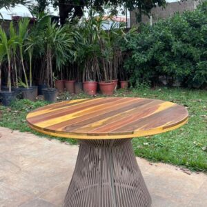 Mesa Redondo Madeira Enverzizada Com Base Corda